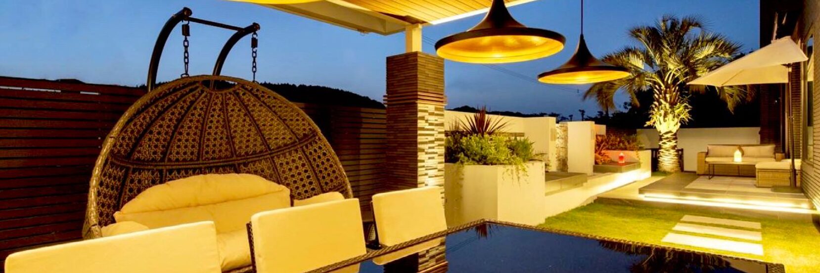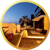 壁泉×ヤシの木のあるリゾート外構